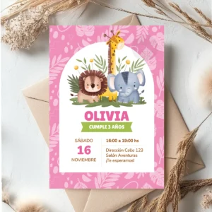 Kit Imprimible Animalitos De La Selva Rosa