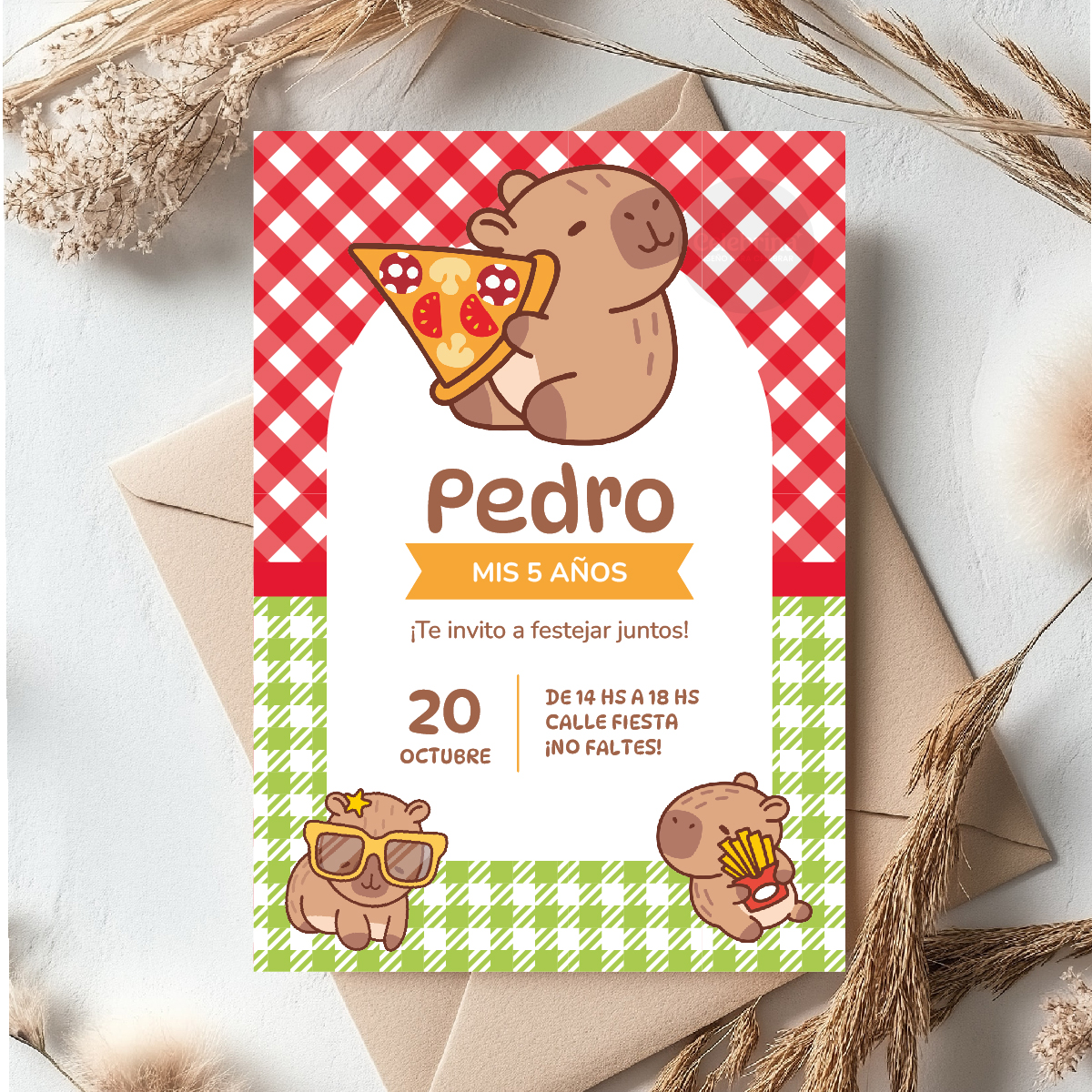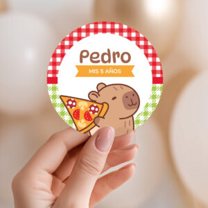Kit Imprimible Capibara Pizza Party Carpincho Rojo