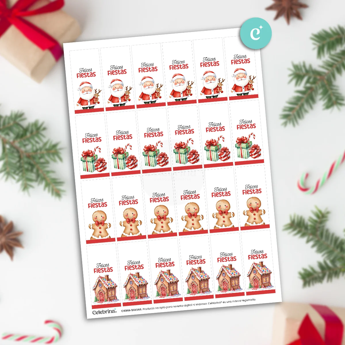 Uso personal, para acompañar tus productos, eventos o regalos. Prohibida la reventa, tanto digital como impresa. Celebrina® es una marca registrada. Todos los diseños y derechos reservados.